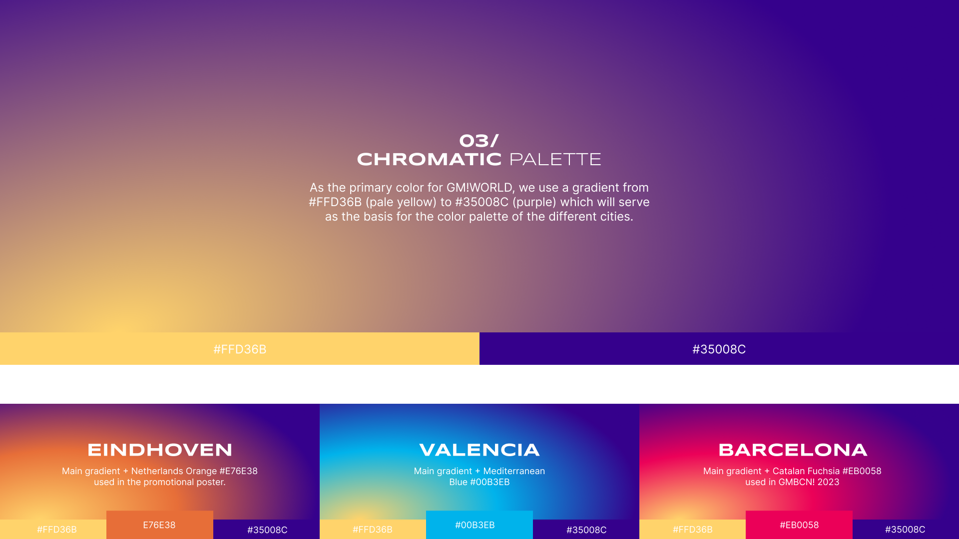 The forum is international by design, each edition takes place in a different host city, with a different cultural context. The brand needed to be globally neutral enough to work anywhere, while also adaptable enough to absorb local character without losing coherence. It also had to position GM World! as a serious professional event, not just another Web3 hype vehicle.